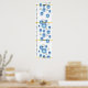 Medir el crecimiento de los niños frente a las crecientes burbujas azules y blancas. Las burbujas se ven tridimensionales. Líneas amarillas a 2 pies (medida desde el suelo), 3, 4 y 5 pies. Pulgadas marcadas entre líneas como 1,2,3,4,5,6,7,8,9,0,1,2 (en línea amarilla).