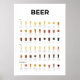 Una tabla estética de cerveza que resume los 54 tipos principales de cerveza y etiquetado cada uno con sus nombres, porcentaje de alcohol y descripciones de gusto.