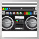 Póster gráfico retro boombox ghetto blaster