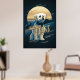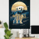 Sorprendente diseño poster de estilo retro de una Frisa Bichon con un fondo montañoso y un gran gráfico solar todo en una llamativa paleta de colores dorados a través del azul prusiano. Una gran fuente decorativa nombra a la raza del perro. Busque ID754 para ver otras opciones de color y razas de perros adicionales en este estilo.