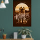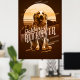 Sorprendente diseño poster de estilo retro de un Golden Retriever con un fondo de montañas y un gran gráfico solar todo en tonos monocromos de oro a marrón. Una gran fuente decorativa nombra a la raza del perro. Busque ID754 para ver otras opciones de color y razas de perros adicionales en este estilo.