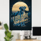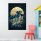 Sorprendente diseño poster de estilo retro de un Golden Labrador Retriever con un fondo de montañas y un gran gráfico solar todo en una llamativa paleta de colores de oro a través del azul prusiano. Una gran fuente decorativa nombra a la raza del perro. Busque ID754 para ver otras opciones de color y razas de perros adicionales en este estilo.