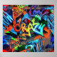 Póster Grafiti brillante, diseño gráfico urbano.