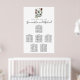 Moda y elegancia. Una cresta familiar con monograma y su apellido se encuentra en la parte superior de esta simple tabla de asientos de 6 mesas. El escudo está decorado con flores rojas y blancas. Su monograma está en el escudo y su apellido aparece en el cartel de abajo. Encuentra tu asiento y los nombres de la novia y del novio están en la parte superior. La opción Encuentra tu asiento está escrita en una fuente serif clásica, mientras que tus nombres están escritos en un guión popular y de tendencia. Es muy fácil cambiar el texto de la plantilla a los nombres de los invitados. Esta tabla de asientos boda forma parte de la colección Escudo Floral Rojo. Contiene los principales signos que le permiten personalizar fácilmente su ceremonia de boda y su recepción. Debería ver un enlace en esta página. Si no ves el enlace o necesitas ayuda con un elemento, por favor contacta conmigo.