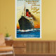 Este vintage poster de publicidad de viajes es de la gran Western Railway, la ruta directa a Irlanda a través de Fishguard. Este colorido poster es de un gran barco de vapor que atraviesa el océano con manadas de gaviotas que vuelan alrededor de él.