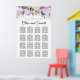 Hermosos rosas violetas y vegetación que cuelgan crean frondosos bordes en la parte superior e inferior de esta tabla de asientos florales. Los nombres de las parejas de bodas se escriben en un tipo de letra de guión clásico. Esta elegante carta de asientos forma parte de la colección Violette que contiene carteles, programas, menús, tarjetas de presentación y decoración de mesa que le permite personalizar fácil y asequible su ceremonia boda y recepción.