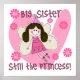 Gran Hermana Aún la Princesa Camisetas, tazas, bolsas, tarjetas, botones, pegatinas, cadenas de llaves, almohadas y otras ropas y regalos de la hermana mayor con una adorable princesa de hadas sobre un gran fondo de corazón rosado y pequeñas flores rosadas con un texto que dice "¡Gran Hermana aún la Princesa!".