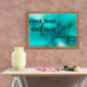 Excelente cocina asada. Decoran la cocina con un poster inspirador turquesa.