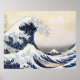 Poster de arte con la huella de un bloque de madera, The Great Wave off Kanagawa (c. 1829-32) del Periodo Edo, de Katsushika Hokusai (1760-1849), artista japonés, que representa un paisaje marino con el Monte Fuji al fondo. En el estilo de Ukiyo-e, que representa la vida diaria japonesa.