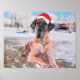 Póster Gran Perro De Azulejos Sentado En Gorra De Navidad