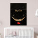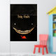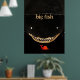 Este diseño dominante en negro tiene el ilustracion de un gran ilustracion de tiburón que da miedo y que sigue a un pequeño pez rojo. Se puede personalizar el texto predeterminado de "peces grandes".