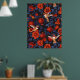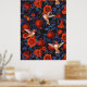 Póster Granadas y colibríes/hojas verdes en negro