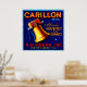 Arte de la marca de cata de frutas vintage para pomelo y naranjas de la marca Carillon Florida.