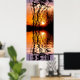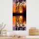 Atardecer con flores de paraguas de silueta y gran hierba sobre el agua con efecto digital