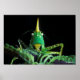 Esta imagen muestra una toma de un saltamontes con cabeza de cono. Pertenecen a la familia de saltamontes de cuernos largos y a menudo son de color verde o marrón con la cabeza en forma de cono, cuerpo delgado y antenas largas. En esta imagen, se pueden ver finos detalles de su cara, y su color verde brillante aparece contra el fondo negro. | "Smithsonian" y el logotipo de Smithsonian son marcas registradas propiedad de Smithsonian Institution.