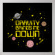 La gráfica "Gravity Me Down" del espacio exterior diseñada por bCreative muestra las palabras escritas entre estrellas y planetas. ¡Esto es un gran regalo para la familia, los amigos o un regalo para usted mismo! Este gráfico divertido es una gran adición al estilo de cualquiera. bCreative es un creador líder y licenciante de diseños y propiedades originales y de moda. ©LCT Creative. Licencia de bCreative.com