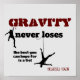 La gravedad nunca duerme. La gravedad nunca miente. Nunca toma un día libre, nunca llama enfermo y nunca PIERDE. Con eso en mente, CLIMB ON, pero saben que no pueden ganar contra la gravedad así que simplemente acepten el empate y vivan para escalar otro día.
