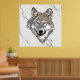 Ilustracion de lobo gris moderno sobre piedra de mármol beige con grano gris