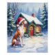 Póster Great Dane Snowy Cabin Santa Hat Christmas Art