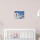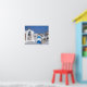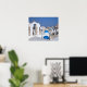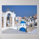 Póster Grecia, Santorini. Torre de campanas y cúpulas azu