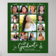 Rejoice and showcase this milestone of your favorite grad. Create this quirky, whimsical, simple, modern, personalized high school graduation K – 12 photo collage poster for a keepsake you’ll always treasure. Fun, white handwritten script typography and hand drawn style graduation icon sketch doodles, along with 13 custom photos of your choice, overlay a hunter green background. Customize the text with your graduate’s name, school name, class year and add your 13 photos. Choose from numerous sizes. Matching invites, thank you cards, address labels, hand signs, stickers, banners and other graduation goodies are also available in this trendy and whimsical collection. Guaranteed to preserve cherished memories of their special occasion!