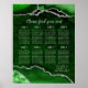 Póster Green Silver Agate Wedding Seating Chart 8 Table