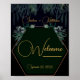 Esta invitación fue diseñada con plantas de color verde oscuro colgando de la parte superior, y rociados de eucalipto con tono de joya que emergen del marco dorado, dando un fondo oscuro y moreno. Este diseño es para cualquiera que ame las plantas, y la naturaleza. Los colores negro, verde y dorado se destacan unos contra otros, aportando contraste y elegancia a este diseño de tipo gentil, marcando el tono para una hermosa boda nocturna tropical o destino.