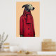 Póster Greyhound in Winter Red Coat, Stylized Drawing
