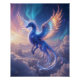 Un majestuoso y noble grifo etéreo brillando con luz celeste en tonos azul zafiro, ametista morado y dorado bajo el sol. Sus plumas y pieles brillan suavemente, reflejando la radiancia cósmica. Las poderosas alas del grifo dejan huellas de energía brillante y brillante mientras se desliza a través de un cielo vibrante lleno de auroras giratorias y nubes suaves y pastel. La escena exuda una sensación de majestuosidad de fantasía y gracia divina, capturando la majestuosa presencia de la criatura contra un deslumbrante telón de fondo de otro mundo. El ambiente es a la vez sobrio y sereno, destacando la naturaleza noble y mágica del grifo.