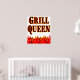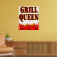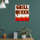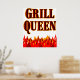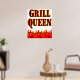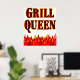 Grill Queen es un gracioso bbq que dice en un tipo de letra flameante occidental para cocineros y cocineros cocineros. Con arte gráfico de llamas rojas y naranjas en la parte inferior del diseño. Otro original de MomsRetro.