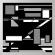 Recortar a tamaños de cuadro estándar o a su propia preferencia personal (disponible en tamaños pequeños o grandes de diferentes proporciones y diferentes tipos de papel). Se trata de un diseño abstracto y geométrico que combina el blanco con formas grises claras y medias y líneas sobre un fondo negro, inspirado en el estilo de diseño moderno de mediados de siglo, con un aspecto contemporáneo.