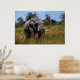 Cielos azules soleados, pastizales y el cierre de un majestuoso elefante gris.