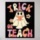 Póster Groovy Halloween Trick O Teach Retro Floral Ghost