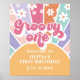 El Groovy One Retro Rainbow Sunshine inspiró el primer cumpleaños del cartel de bienvenida con las mareas de los años 70.
