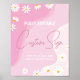Póster Groovy Pink Daisy Birthday Party Table Rótulo