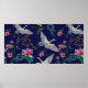 Póster Grúas, olas y flores japonesas. Bordados enfermos
