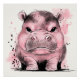 Dibujo gruñón de la tinta de hipopótamo para bebés con salpicaduras de color.