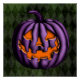 Calabaza malva y naranja de Halloween calabaza Jack Olantern sobre el fondo del grunge verde