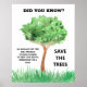 "Salven los árboles" poster de clase ambiental/conservacionista. Texto: "¿Sabías? Un árbol promedio produce suficiente oxígeno para mantener a cuatro personas respirando durante un año. Salven los árboles". Perfecto para el aula.