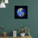 Tome una posición y salve nuestro planeta - poster negro con una colorida representación artística del hemisferio occidental rodeado de texto azul.