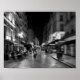 Imagen en movimiento borrosa de gente caminando por las calles pasando por cafés y bistros por la noche en París. Fotografía en blanco y negro del estilo de vida parisino de la cultura urbana.