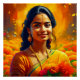 Hermosa mujer hindi con marigolas naranjas para Gudi Padwa.