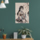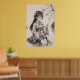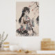 Poster ilustra uma gueixa, e arvores no fundo, no estilo Tradicional Chines.