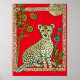 Póster Guepardo sobre un fondo rojo con flores