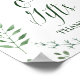 Esta corona rústica con tarjetas de hojas verdes y signos de regalo es perfecta para un boda al aire libre o una ducha de novia. El diseño presenta un marco hermoso y caprichoso de hojas acuáticas, plantas y vegetación. La línea de texto al final del cartel puede ser personalizada con la fecha, los nombres de la novia y el novio, o un mensaje corto como "Gracias".