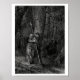 Un guerrero viktor está solo en el bosque, inclinándose contra un árbol. Obra de Mary Hallock Foote, de The skeleton in armor, de H. W. Longfellow.