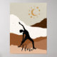 El guerrero del yoga meditación de la silueta negra se extiende contra las montañas abstractas y las fases luna y luna de oro. En un moderno neutro negro, gris y marrón se combina con la decoración de las casas. Se puede personalizar el flujo en una fuente de script moderna.