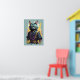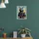 Póster Guerrero Ninja Gato Gris Salpicadura de Fuego Geni