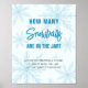 Celebrate in snowy style with this modern and whimsical winter baby shower Guess How Many Snowballs sign. Featuring elegant blue snowflakes and bold script typography, this trendy design blends cute charm with seasonal sophistication.
