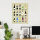 Añada un toque divertido a su cocina o a cualquier habitación con este poster que cuenta con ilustraciones de botellas de vino en un estilo de doodle sencillo con las diferentes variedades de vinos blancos, rojos y espumosos que se identifican debajo de cada botella como chardonnay, pinto noir, malbec, champagne y más. La decoración es perfecta para los amantes del vino y los conocedores.
